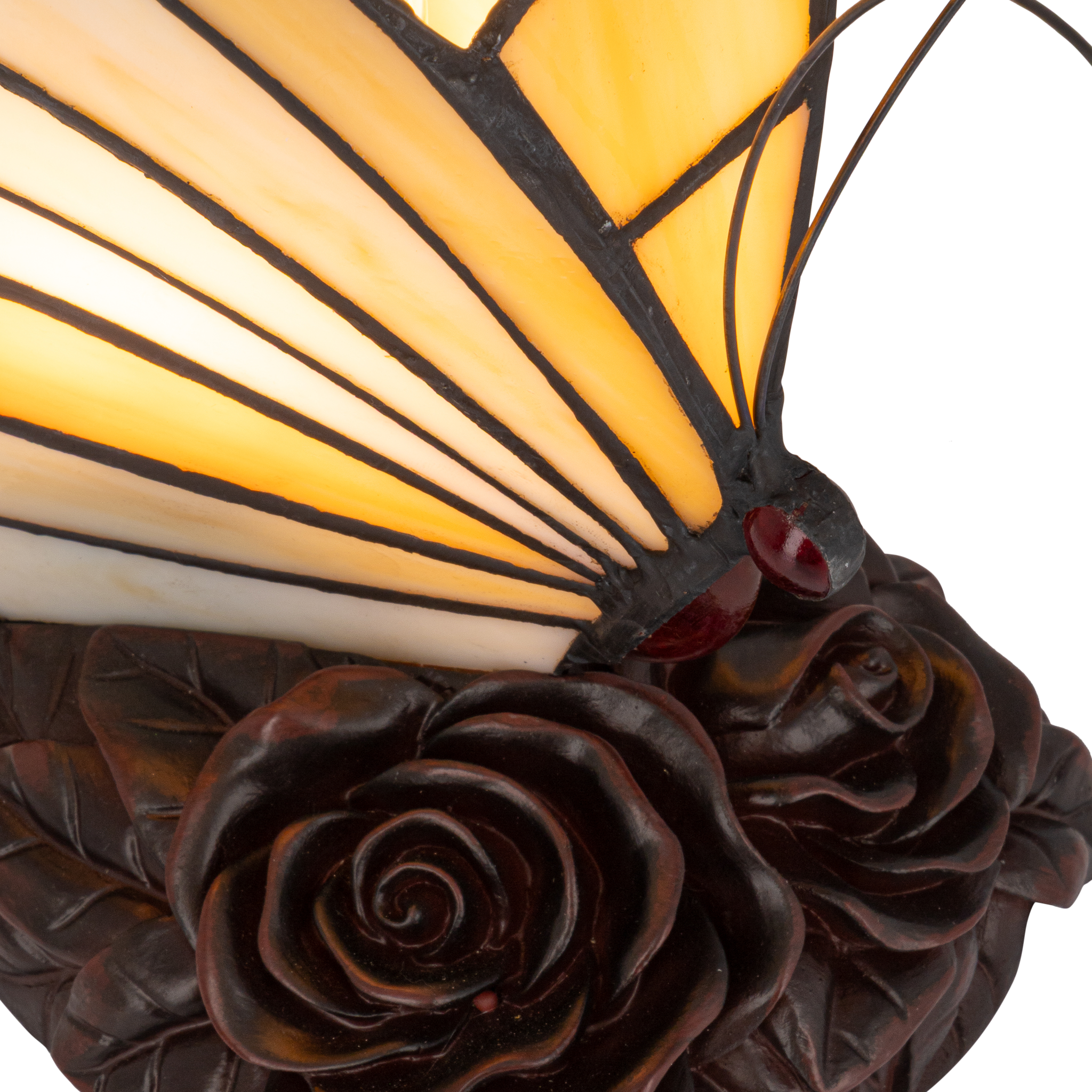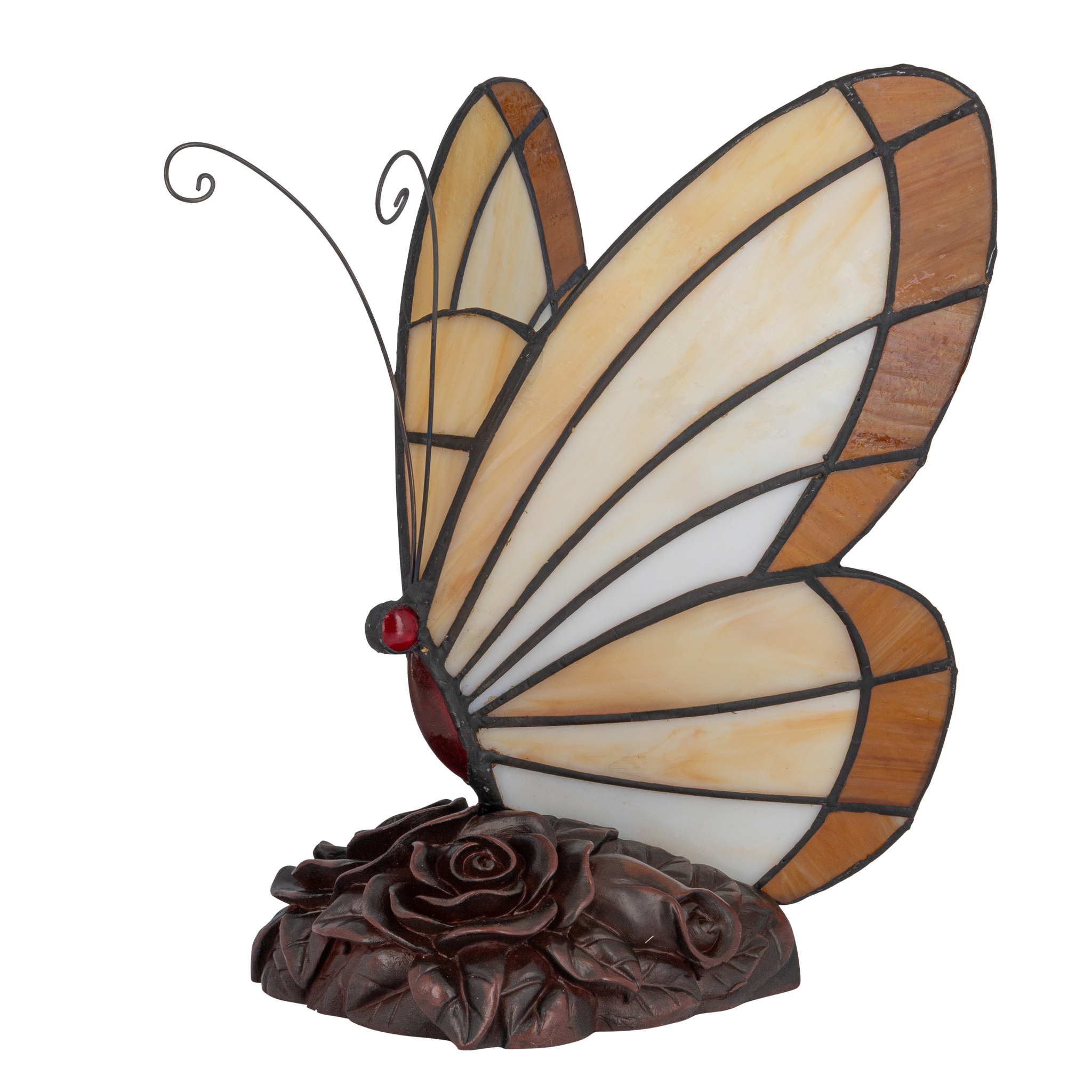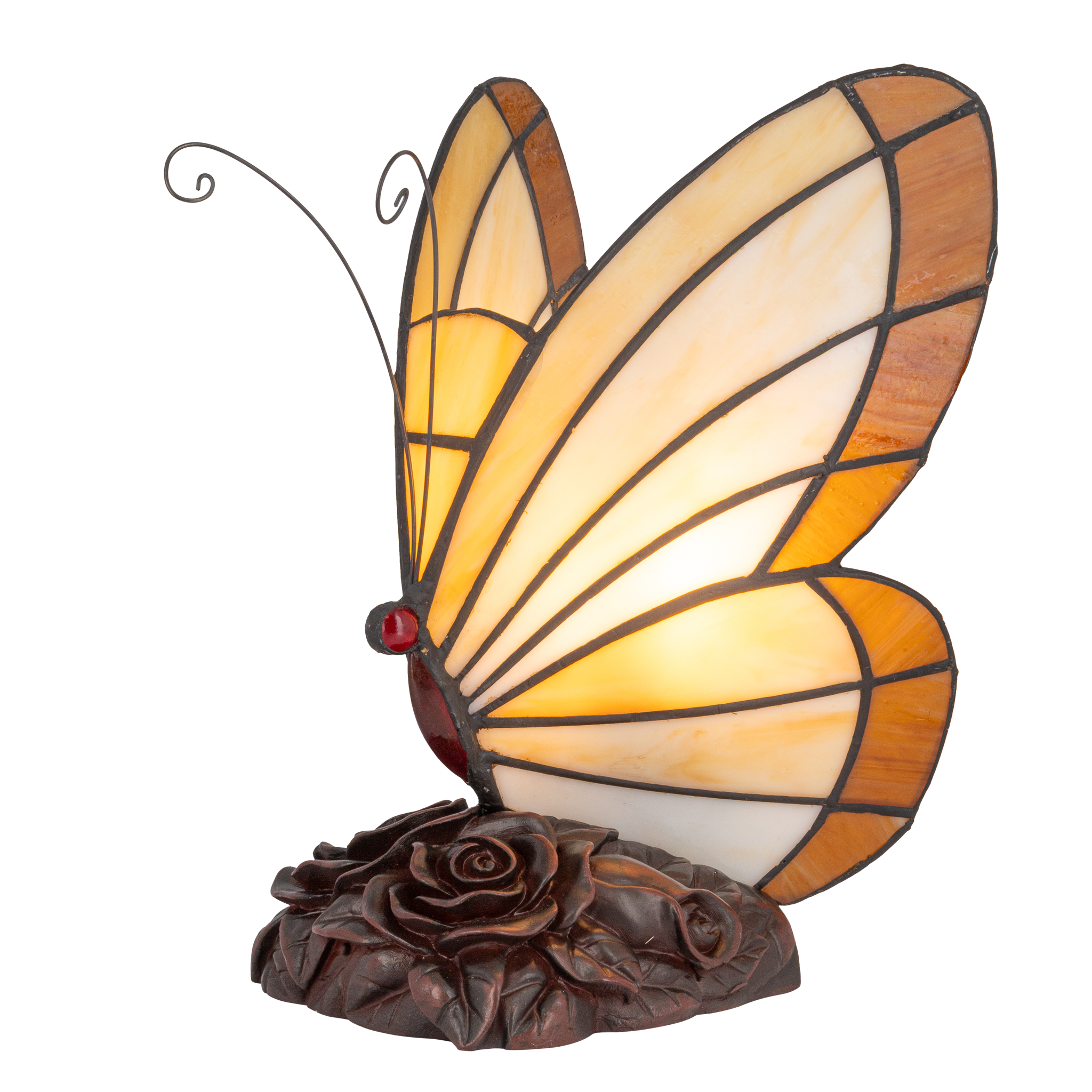 Tiffany vlinderlamp – Warm Crème & Amber Glas – H 24 cm (Art. 8003)