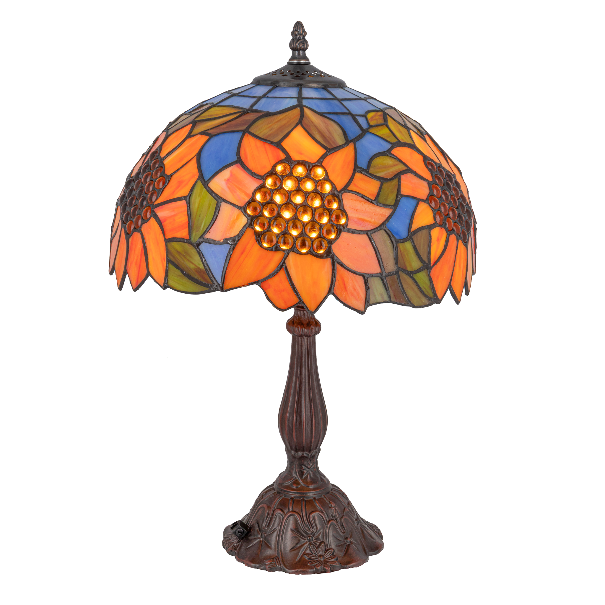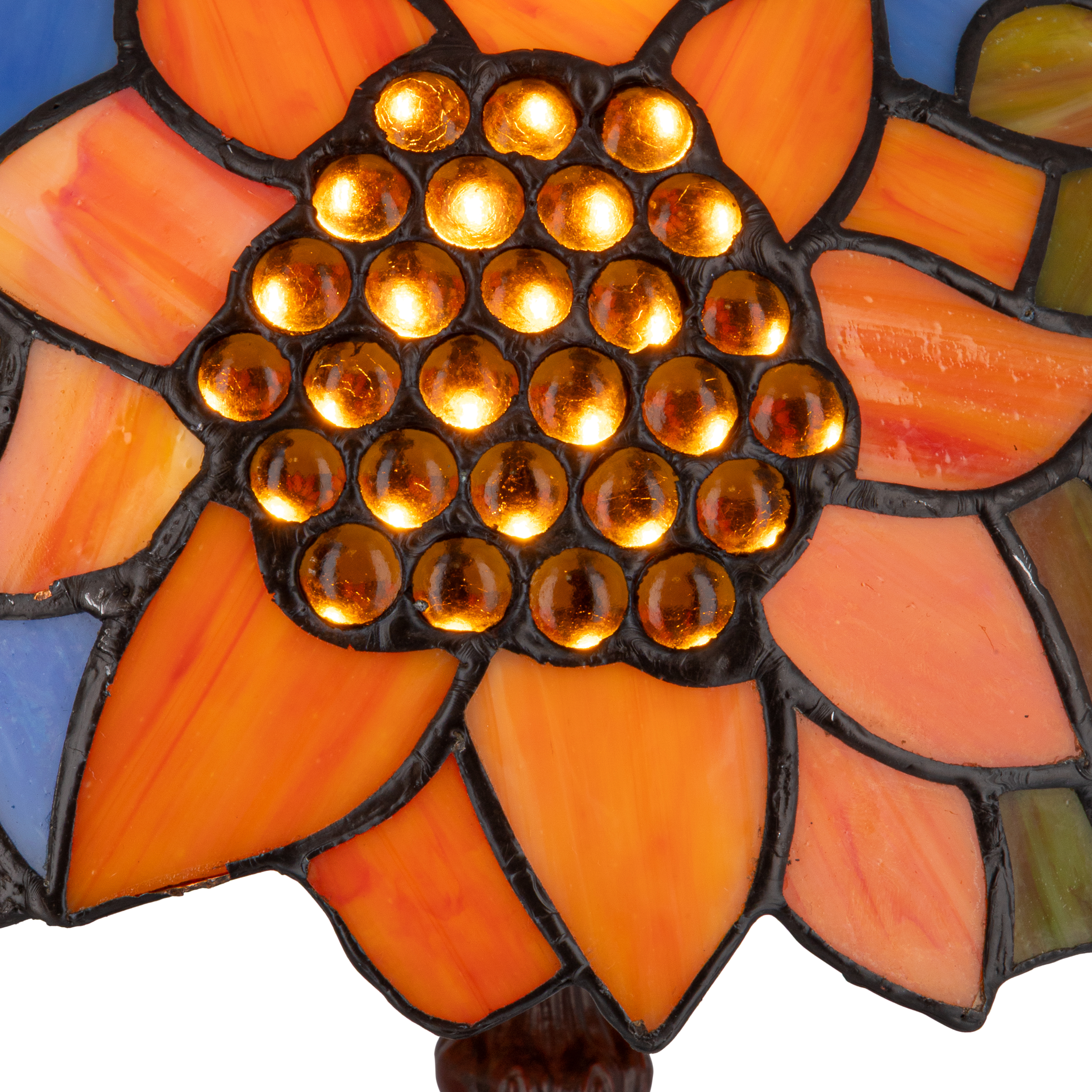De kap bestaat uit ca. 321 stukjes echt glas-in-lood, zorgvuldig geslepen, geselecteerd en met de hand gesoldeerd. De warme oranje-, amber- en roodtinten worden omlijst door levendig blauw en groen, waardoor een rijk kleurenpalet ontstaat dat helemaal tot leven komt zodra het licht wordt ingeschakeld.