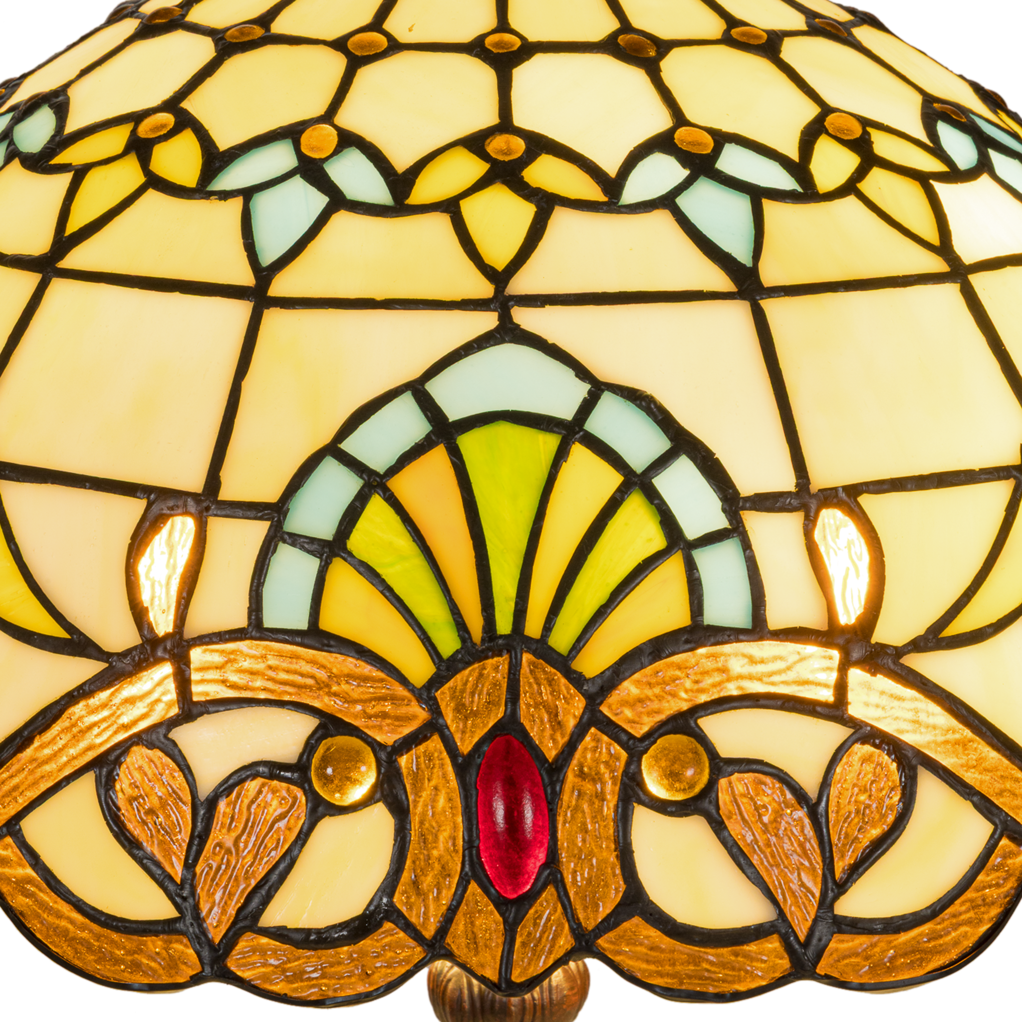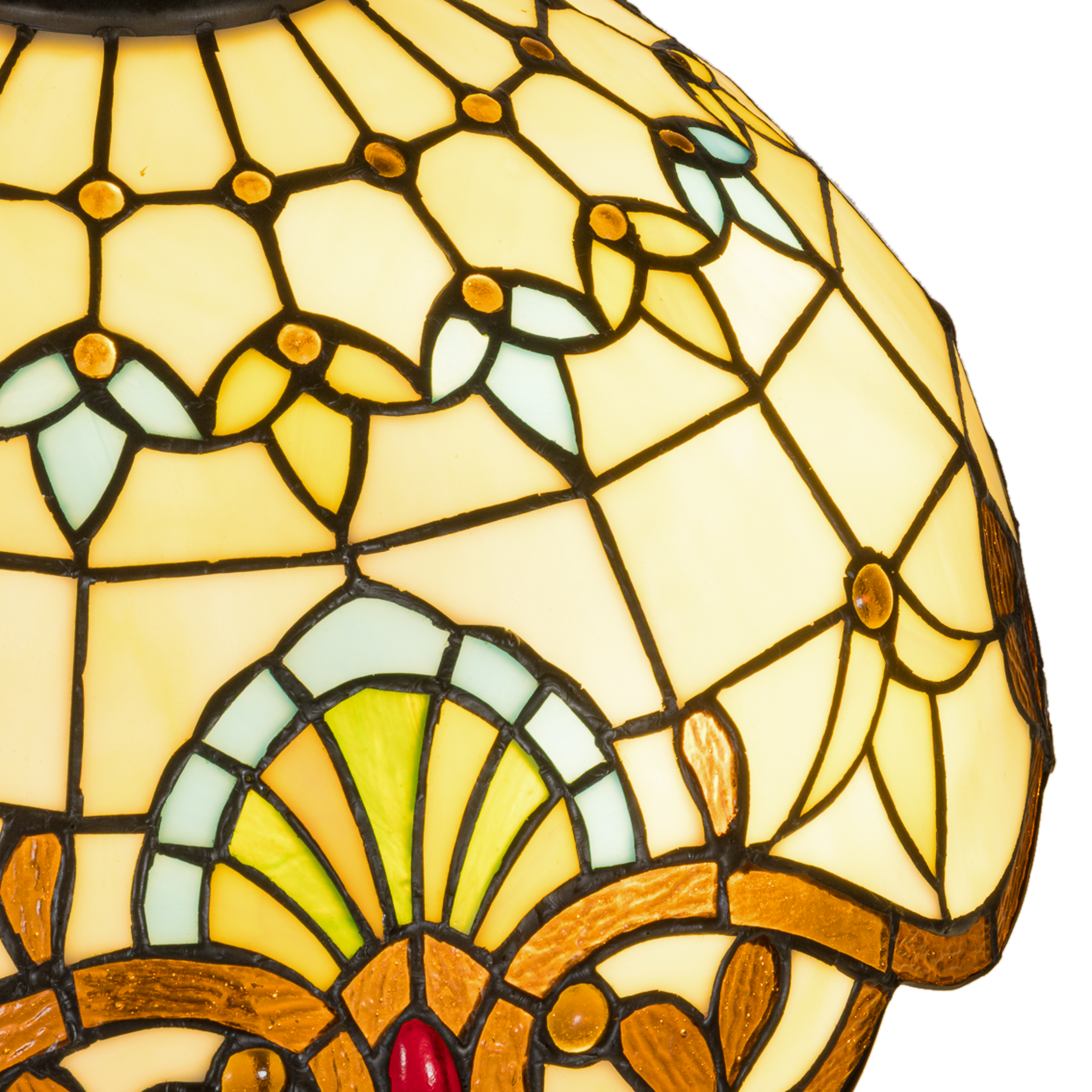 Handgemaakt glas-in-lood: Ca. 369 stukjes echt glas in crème-, groen- en geeltinten