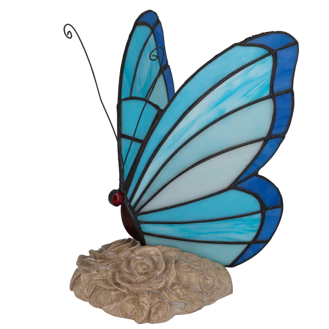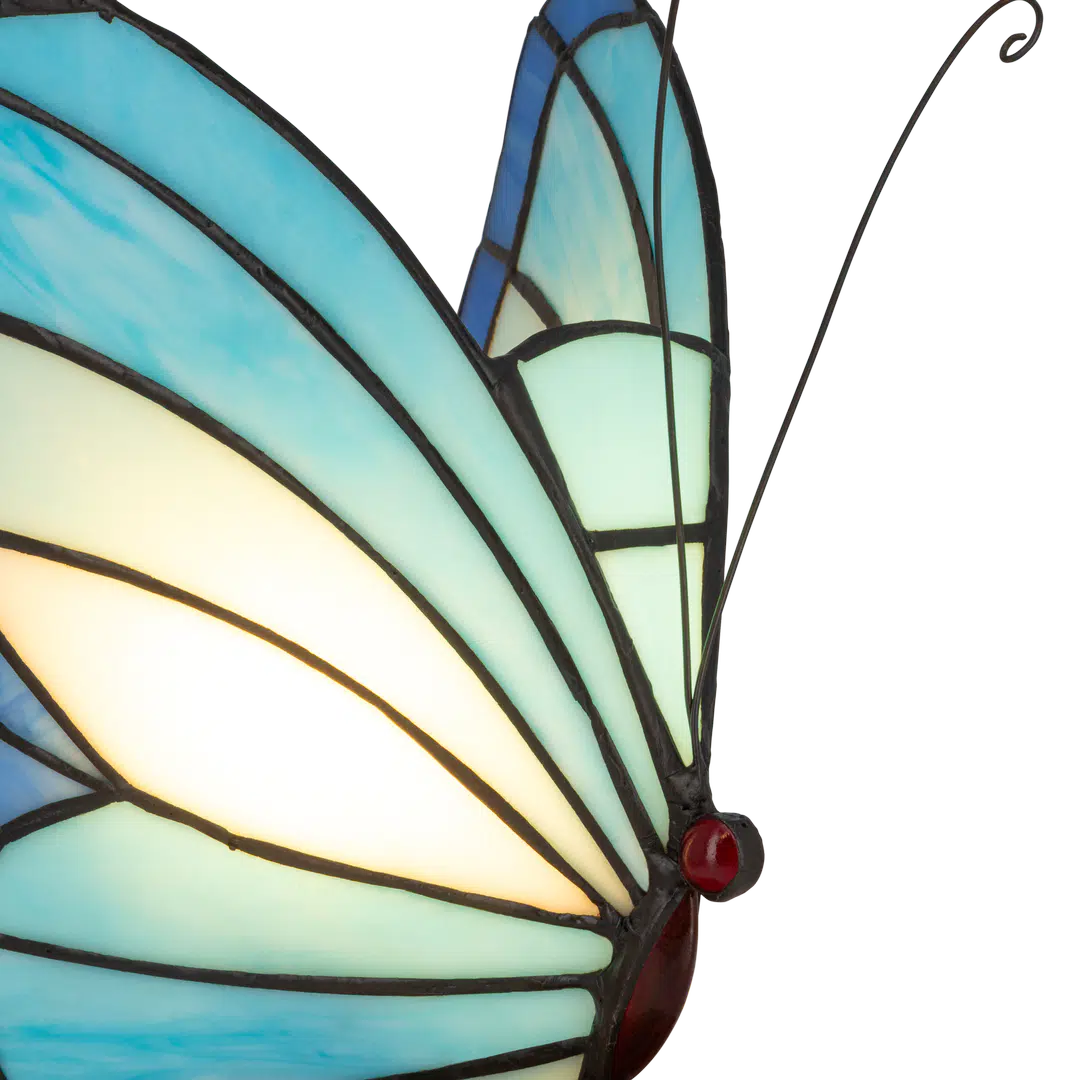 Door de natuurlijke variaties in blauw glas is elke lamp uniek — geen twee vlinders zijn exact hetzelfde.