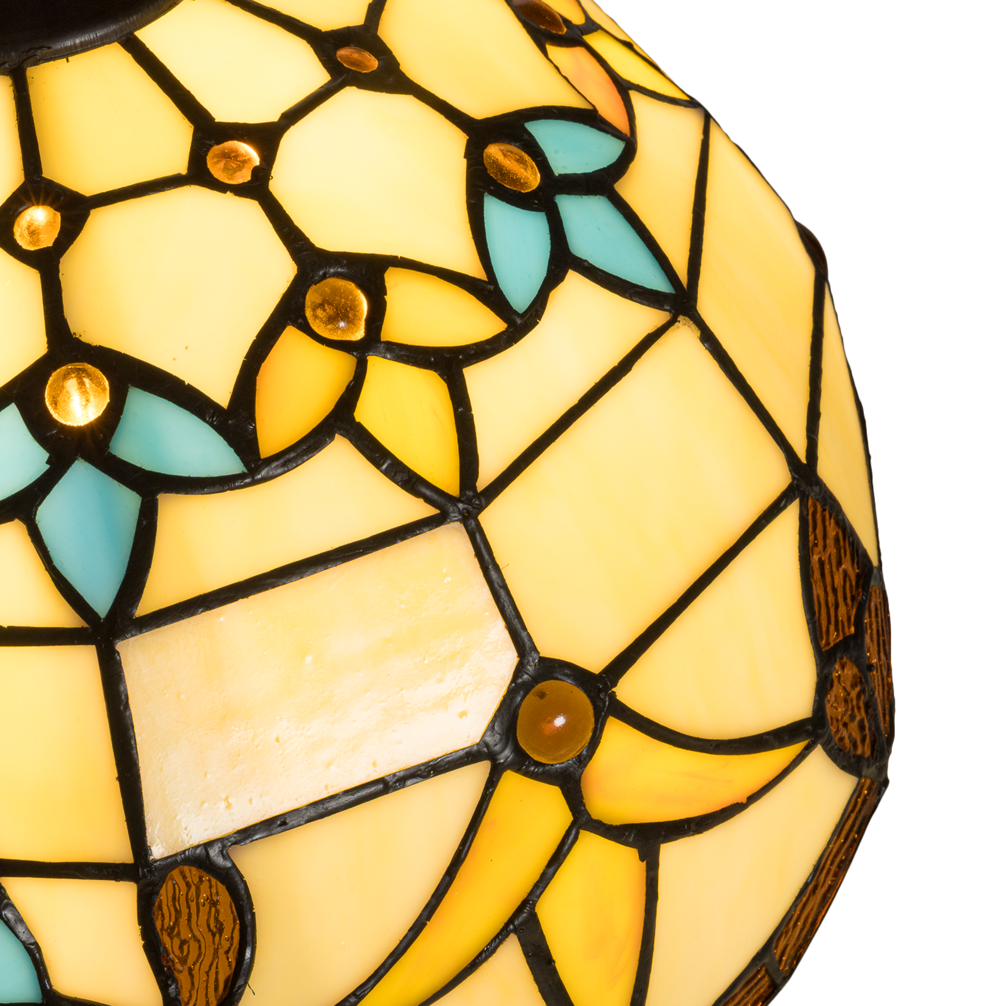 Deze lamp is opgebouwd uit ca. 252 zorgvuldig handgesneden glasstukken, vervaardigd volgens de klassieke Tiffany-techniek. De combinatie van warme basisvlakken met kleuraccenten is geïnspireerd op traditionele Tiffany-patronen uit het begin van de 20e eeuw. Elk exemplaar is uniek door subtiele verschillen in glasstructuur en soldeerlijnen. Een stuk écht Tiffany-ambacht, geselecteerd door RORUVERA vanwege zijn warme, artistieke uitstraling.