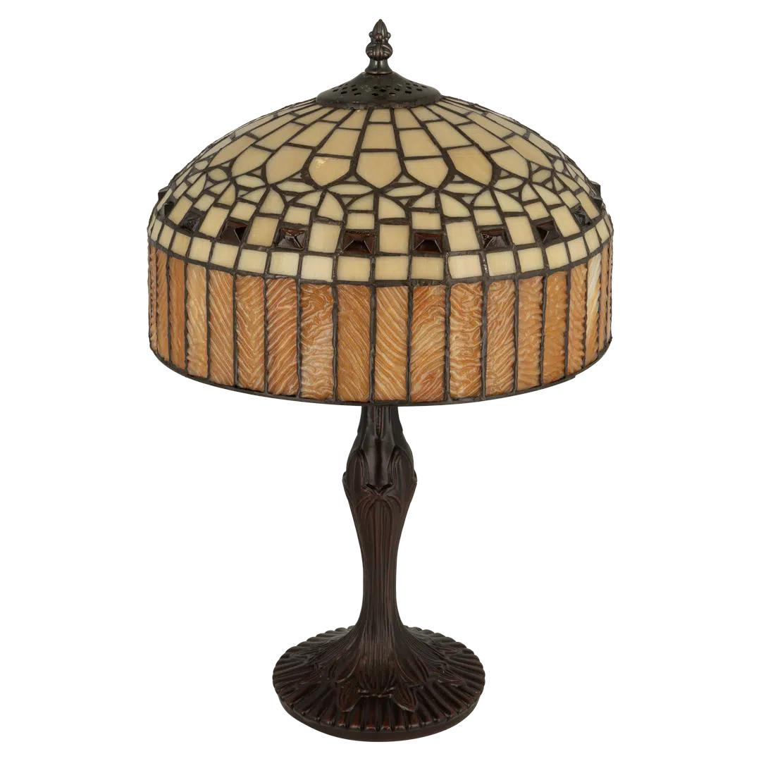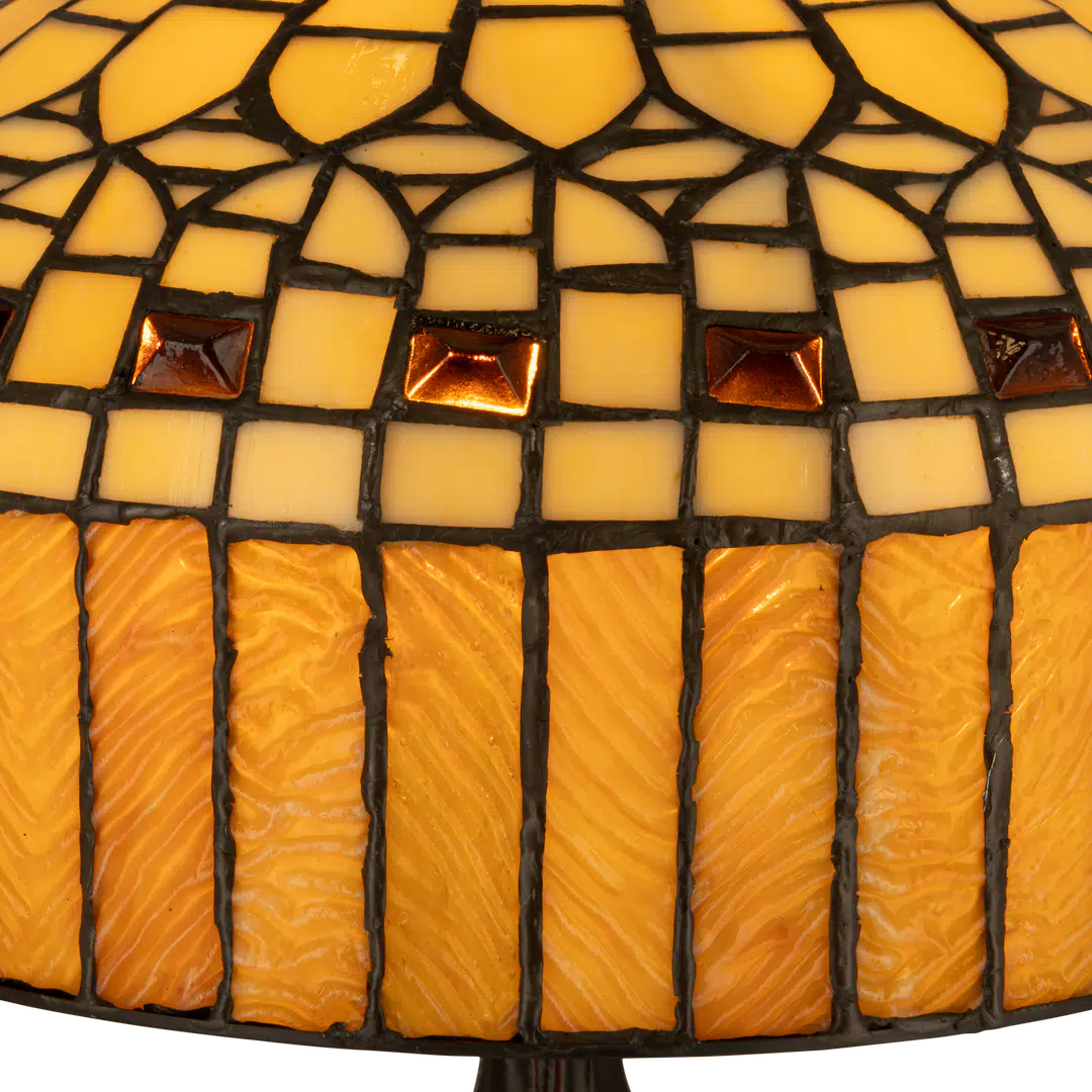 Tiffany tafellamp – Geometrisch & Amber – Ø 30,5 × H 47 cm (Art. 7034)