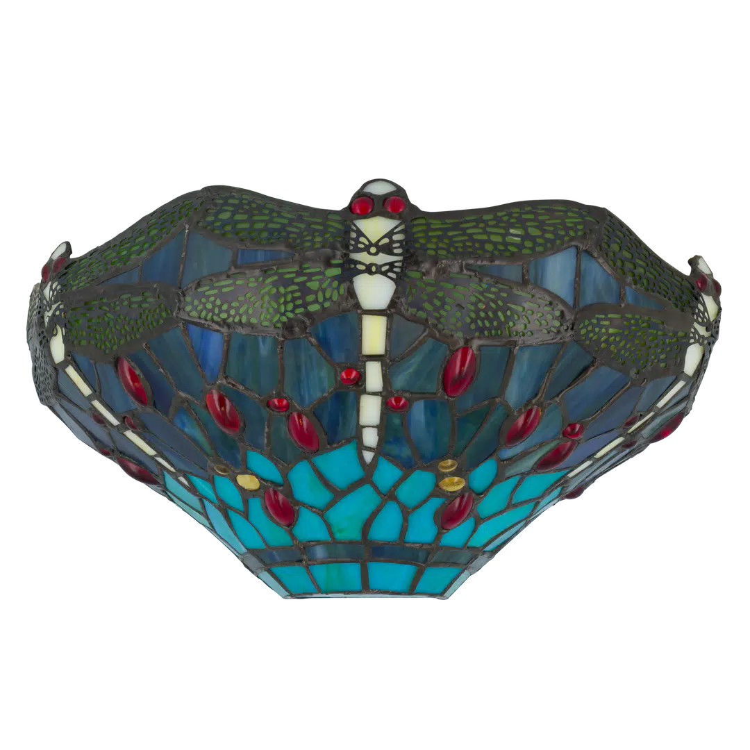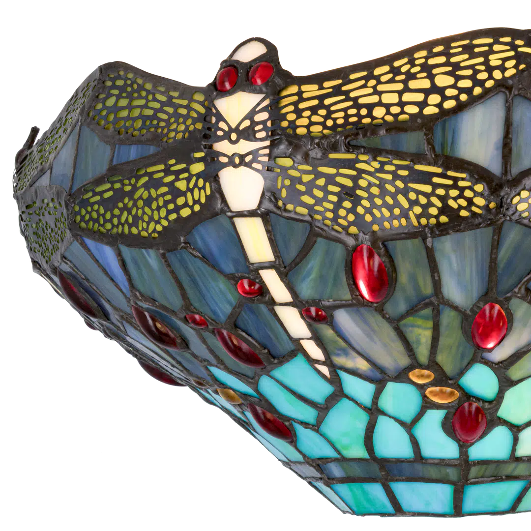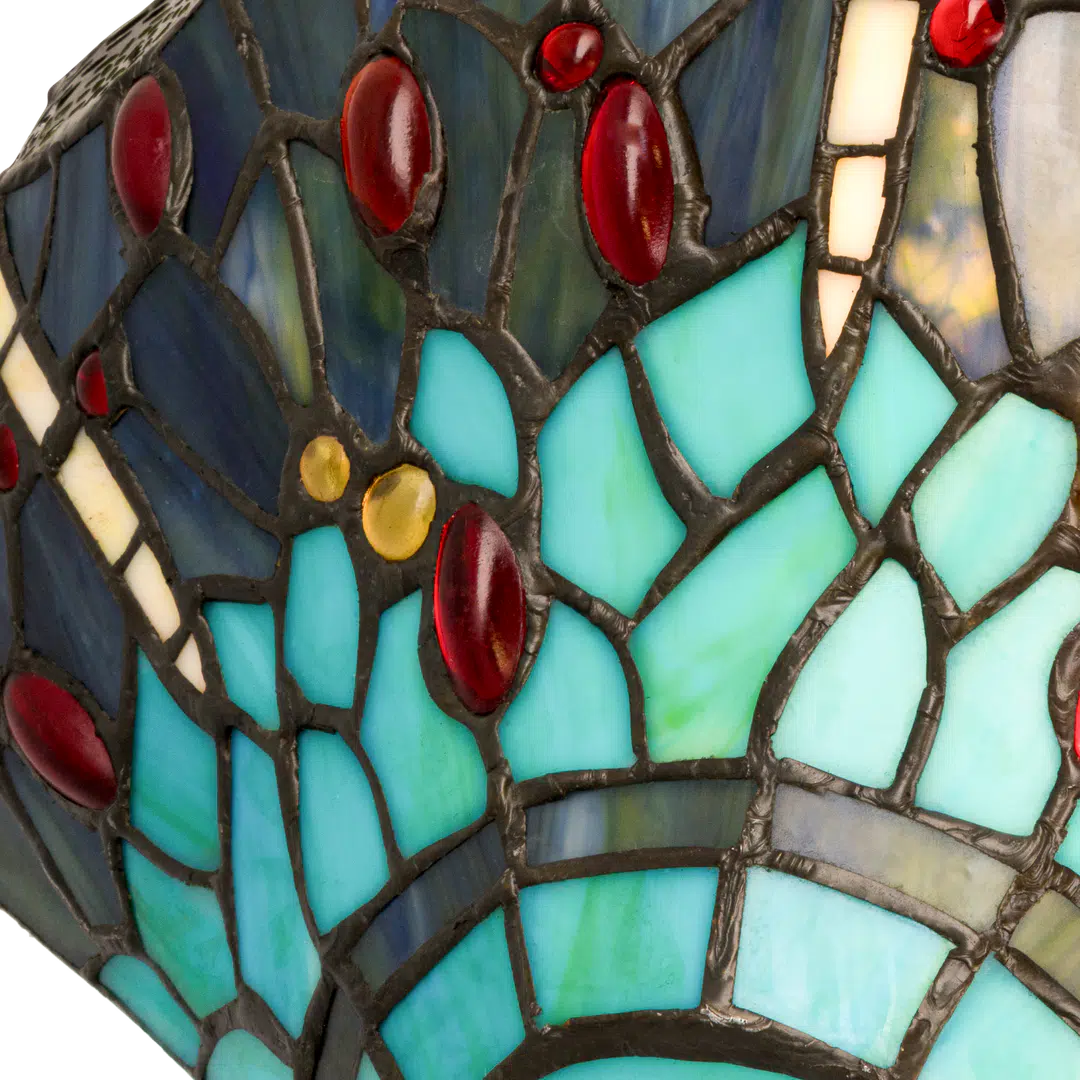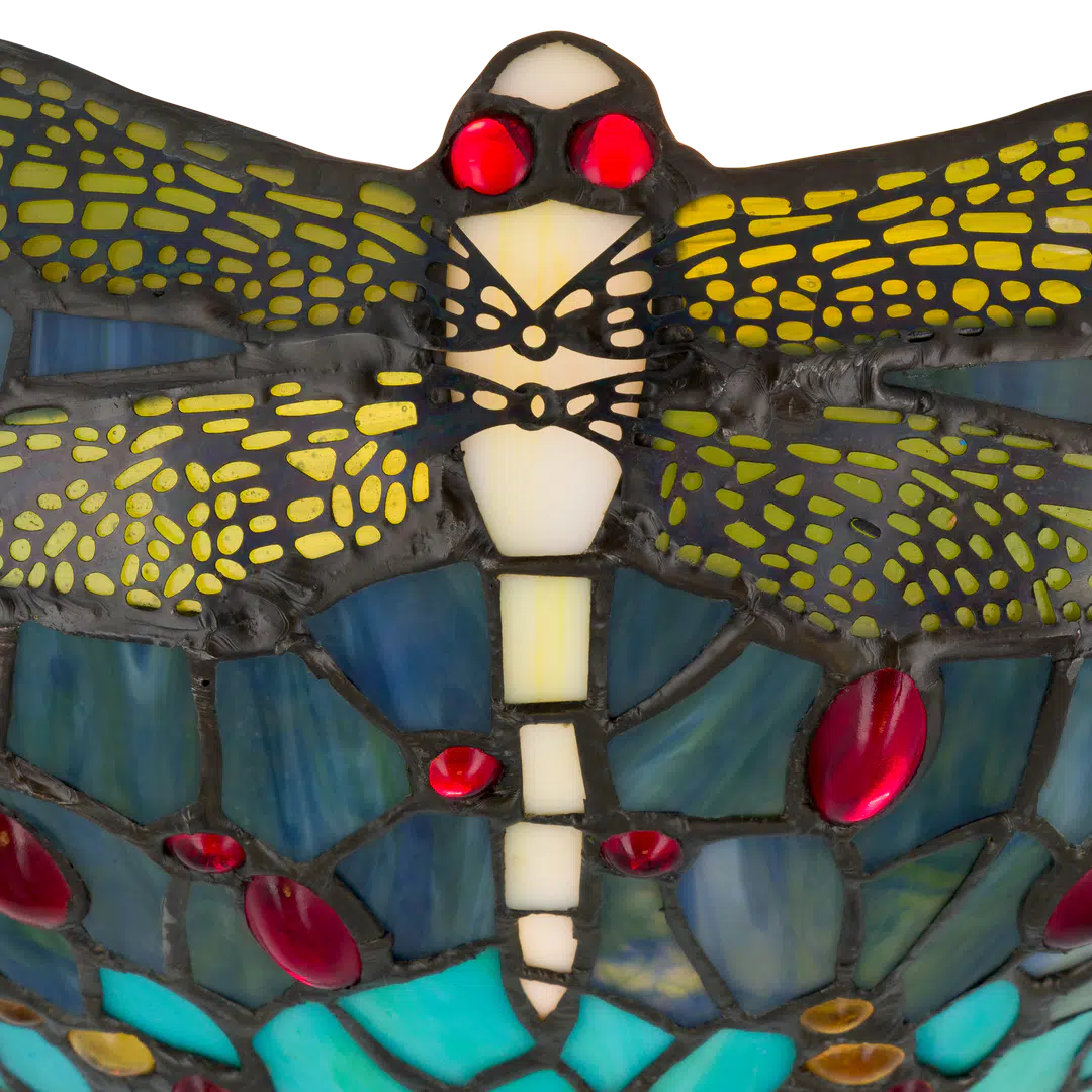 De Tiffany libelle (dragonfly) wandlamp is een verfijnde toevoeging aan je interieur. Het iconische libelle (dragonfly) ontwerp geeft een kunstzinnige flair, en de warme gloed van het glas creëert een uitnodigende sfeer in iedere ruimte. Het gebruik van diepblauwe en turquoise tinten brengt een serene, rustige uitstraling, perfect voor wie op zoek is naar rust en karakter in huis.