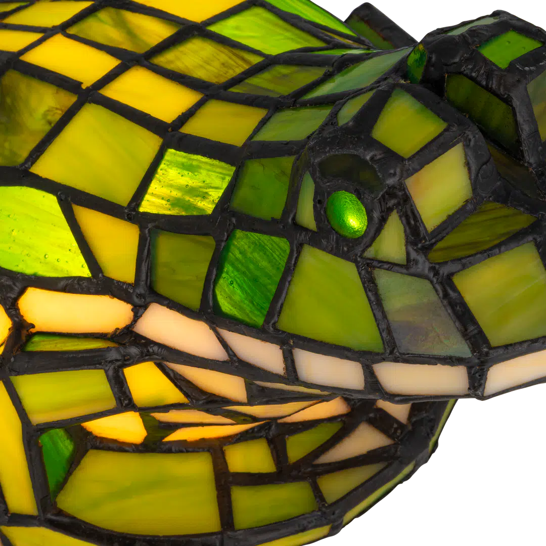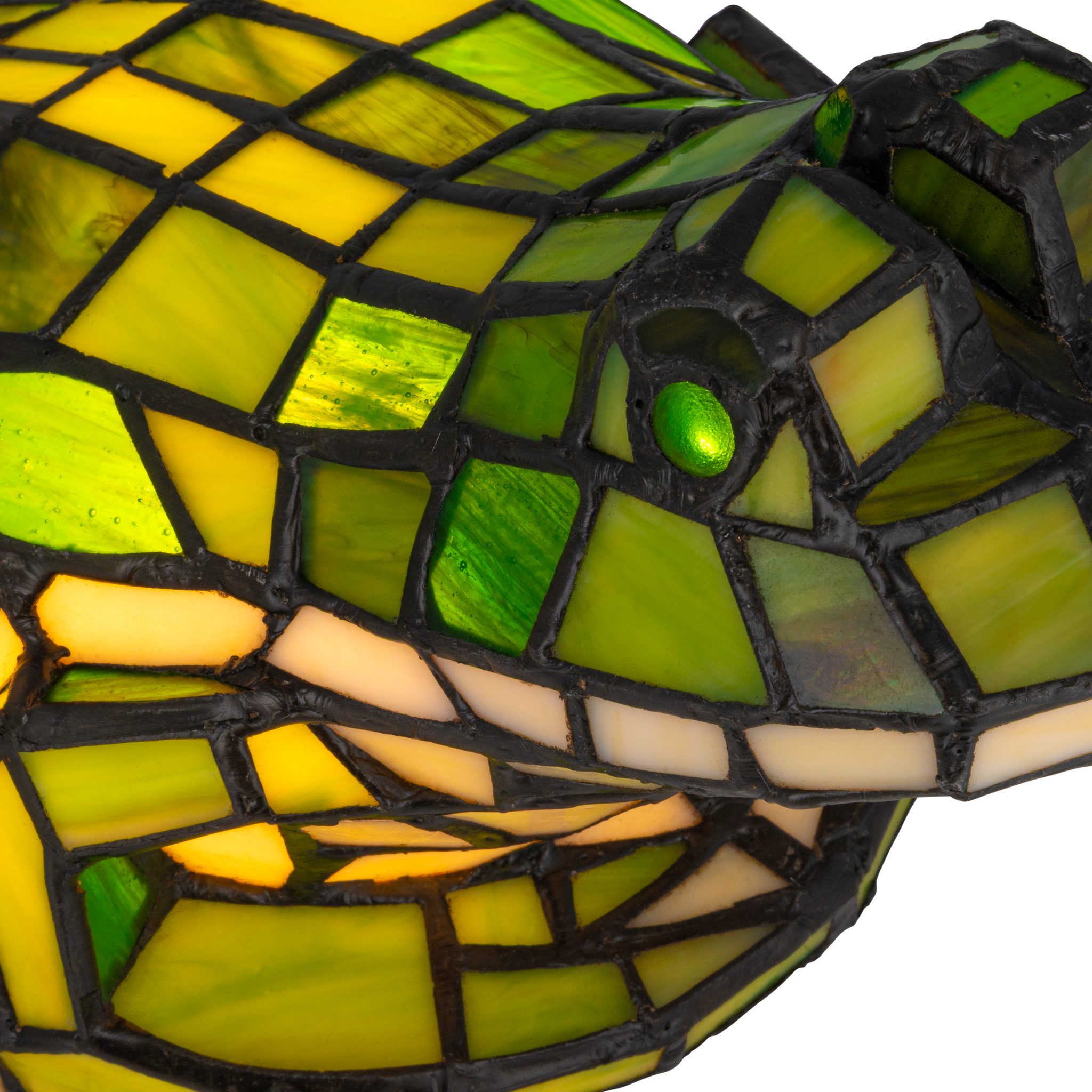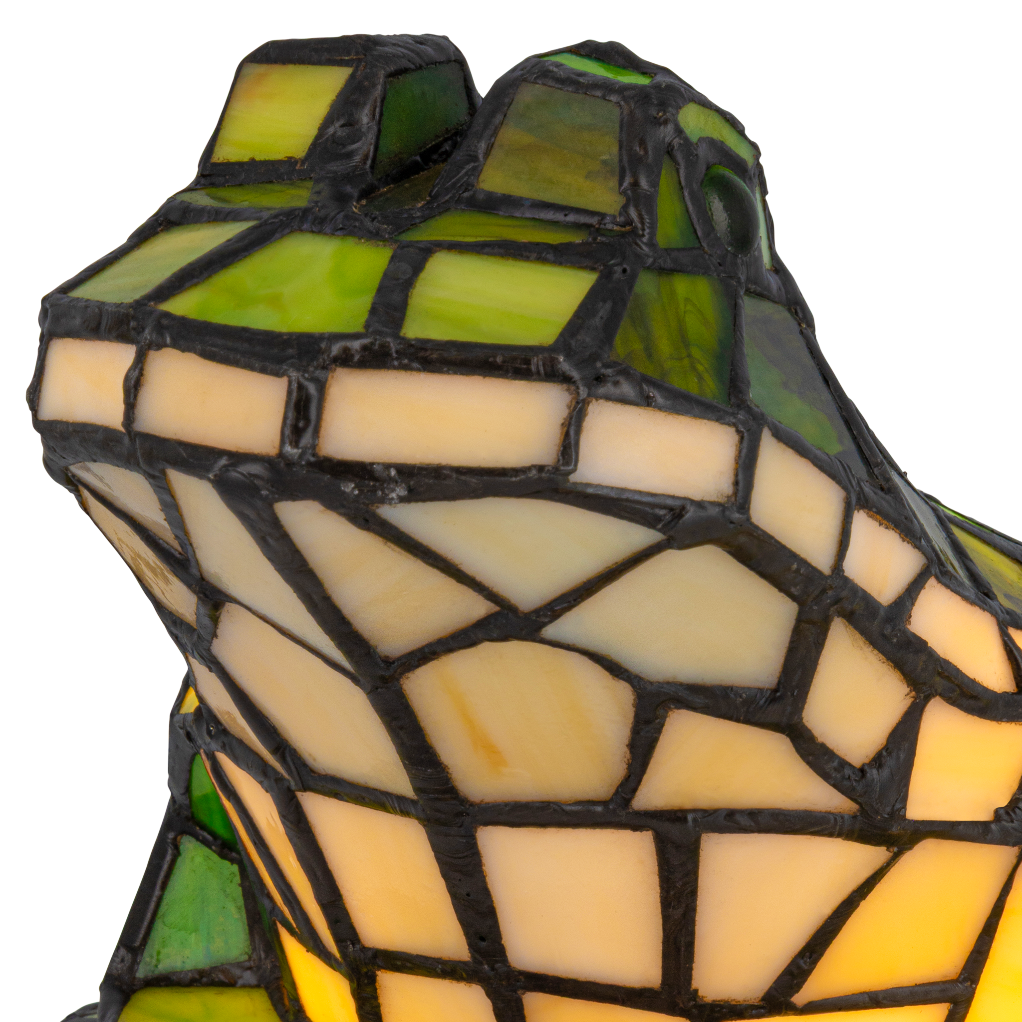 Breng speelsheid, licht en authentiek Tiffany-ambacht in huis met deze charmante Tiffany kikkerlamp van RORUVERA. De decoratieve kikker is opgebouwd uit ca. 209 handgesneden glasstukjes, zorgvuldig in lood gezet zodat het karakteristieke Tiffany-mozaïek prachtig zichtbaar blijft. Het glas combineert frisse groentinten met warme crème- en geeltinten, waardoor er een levendig, sprookjesachtig kleurenspel ontstaat.