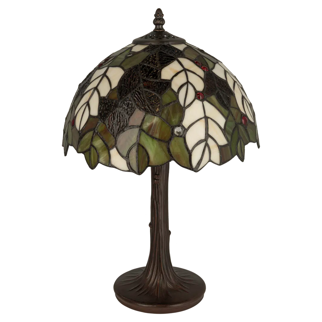 Deze lamp wordt gekozen door de warme natuuruitstraling, het organische bladerpatroon en de bijzondere boomstamvoet. Het ontwerp voelt rustgevend, sfeervol en authentiek aan. Mensen vallen voor de combinatie van groen- en bruintinten en het ambachtelijke glas-in-lood dat warmte en karakter uitstraalt.