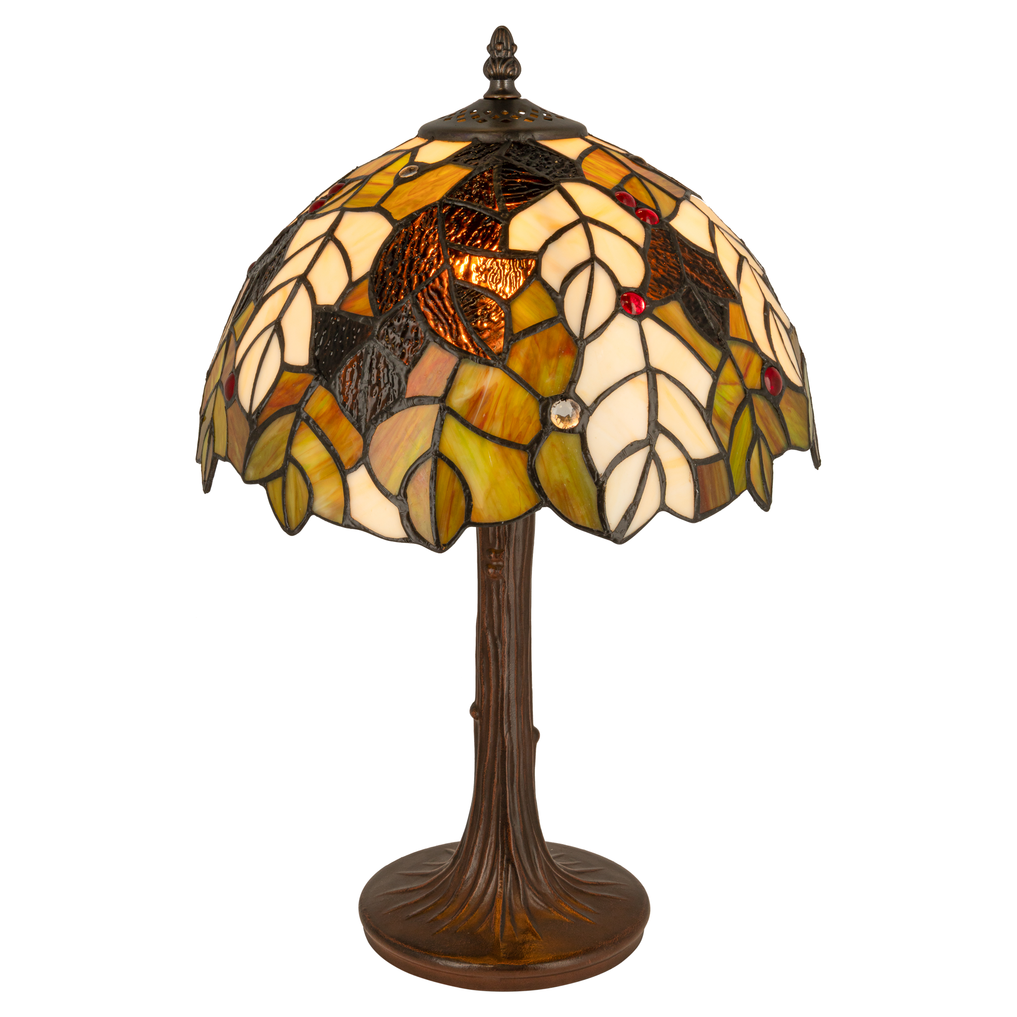 Tiffany tafellamp – Bladmotief & Boomstamvoet – Ø 30,5 × H 46 cm (Art. 7033)