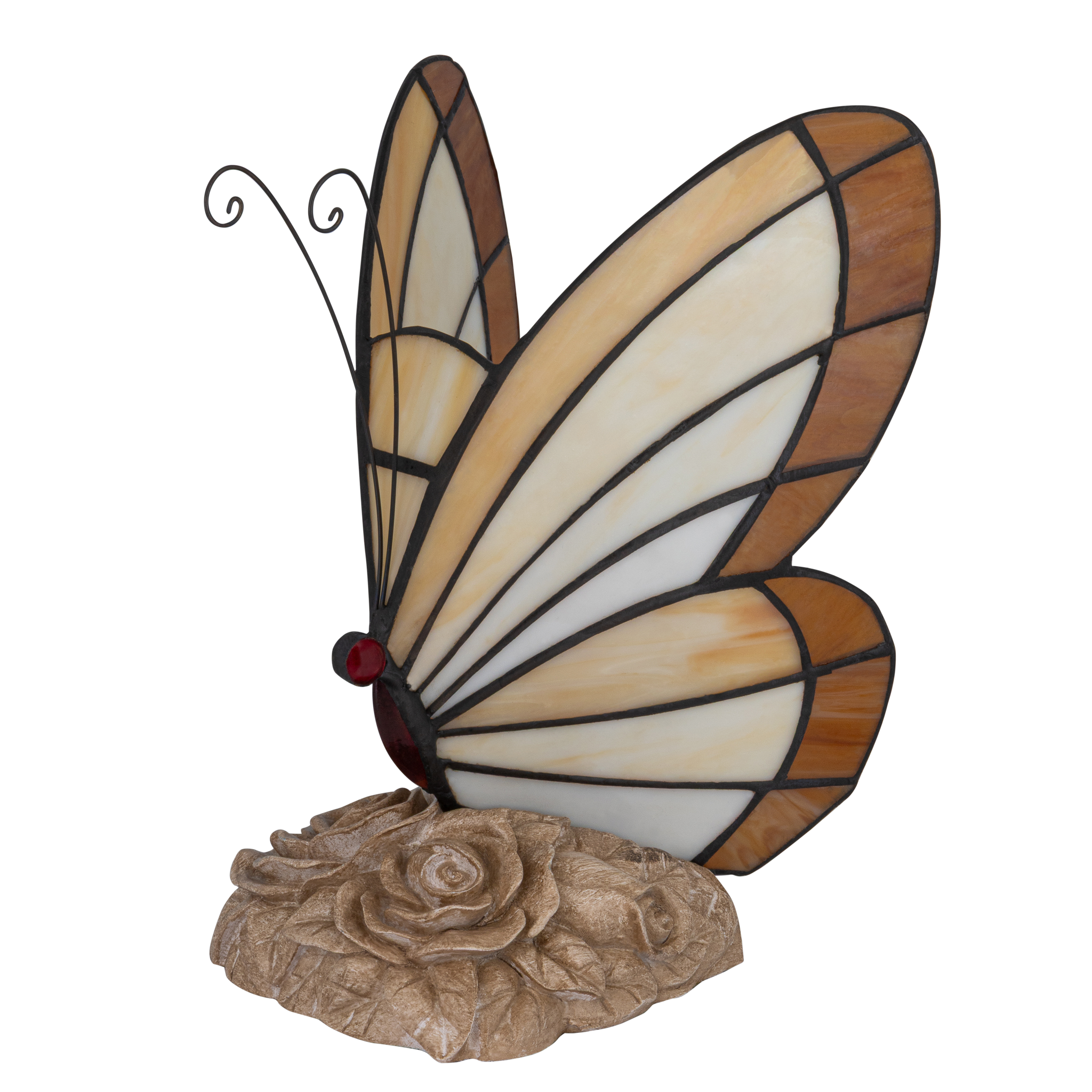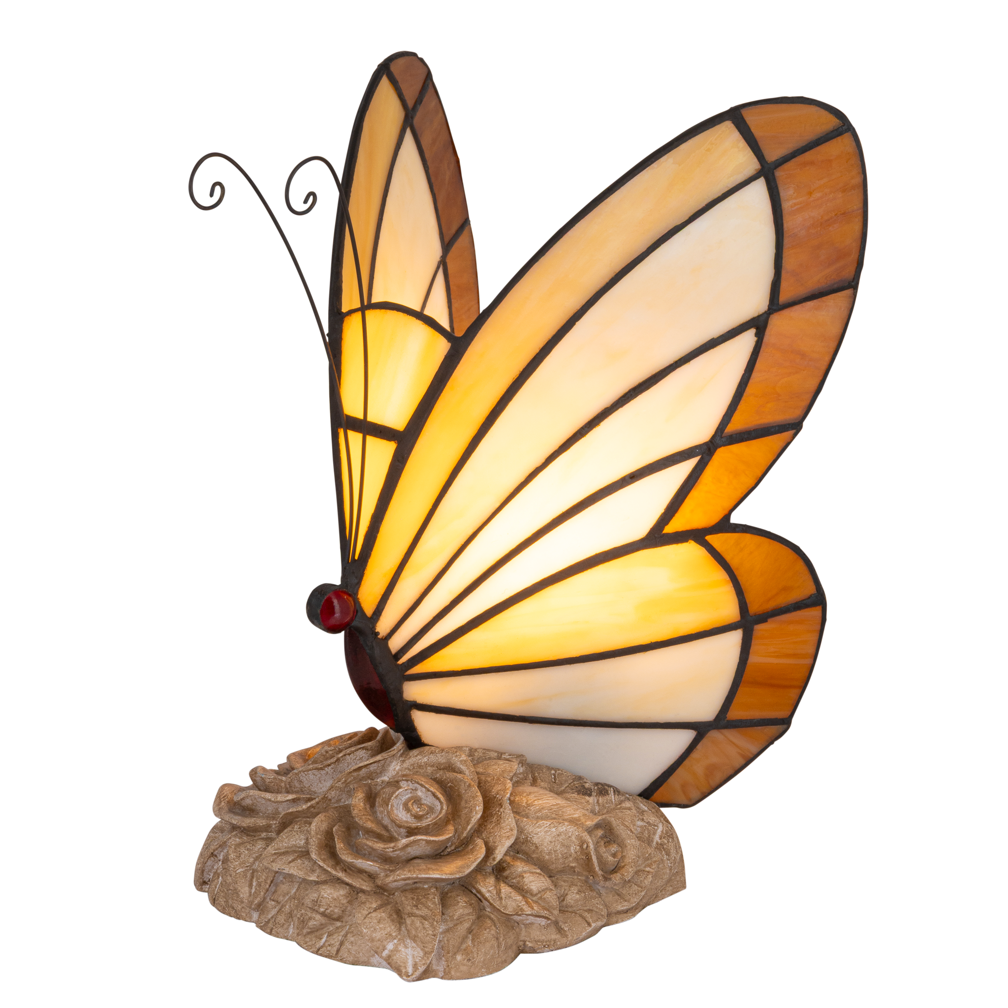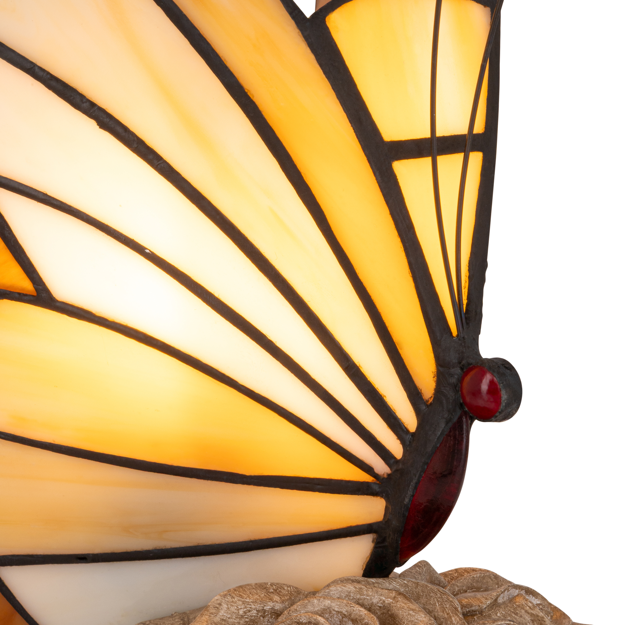 Tiffany vlinderlamp – Licht Crème, Amber & Wit Glas – H 24 cm (Art. 8002)