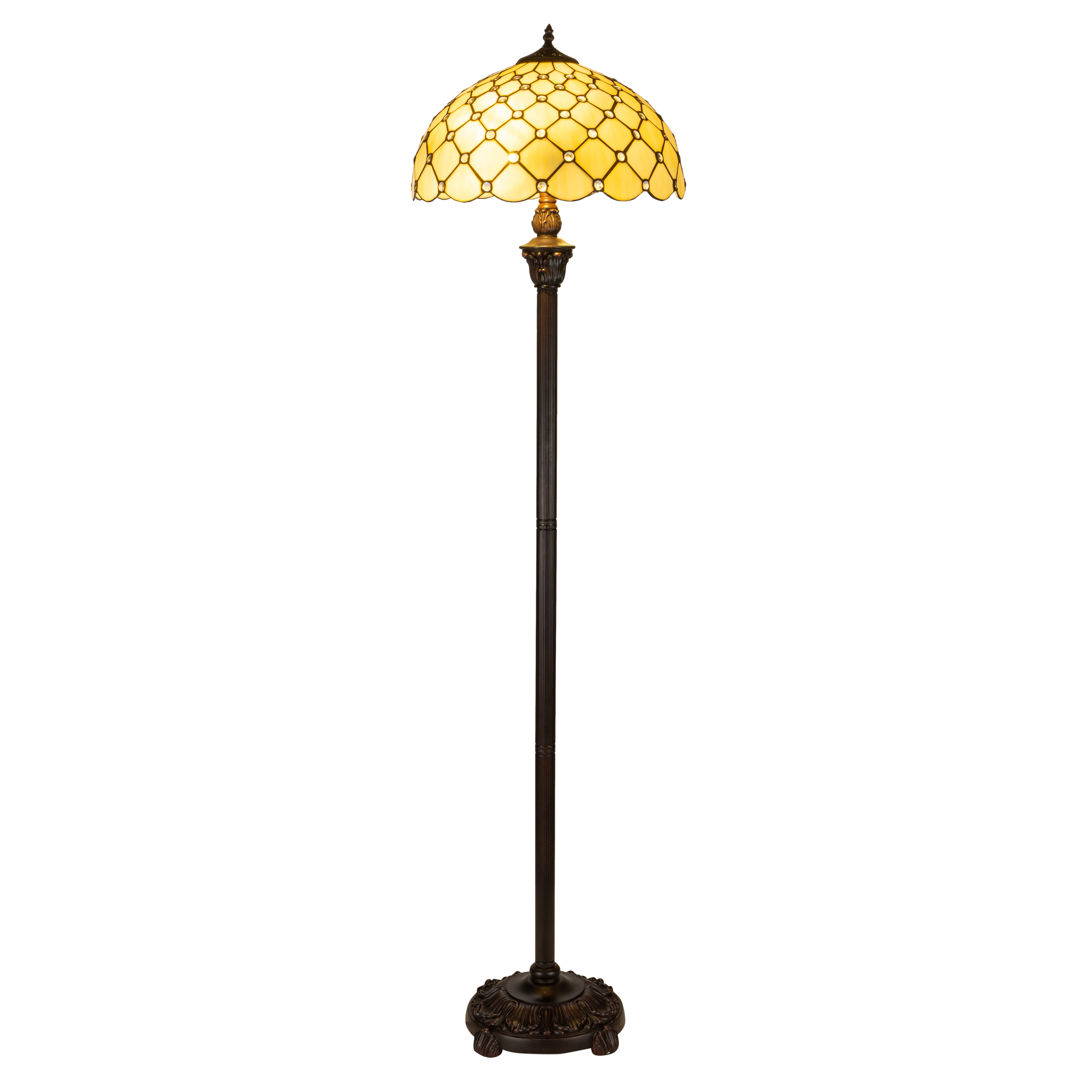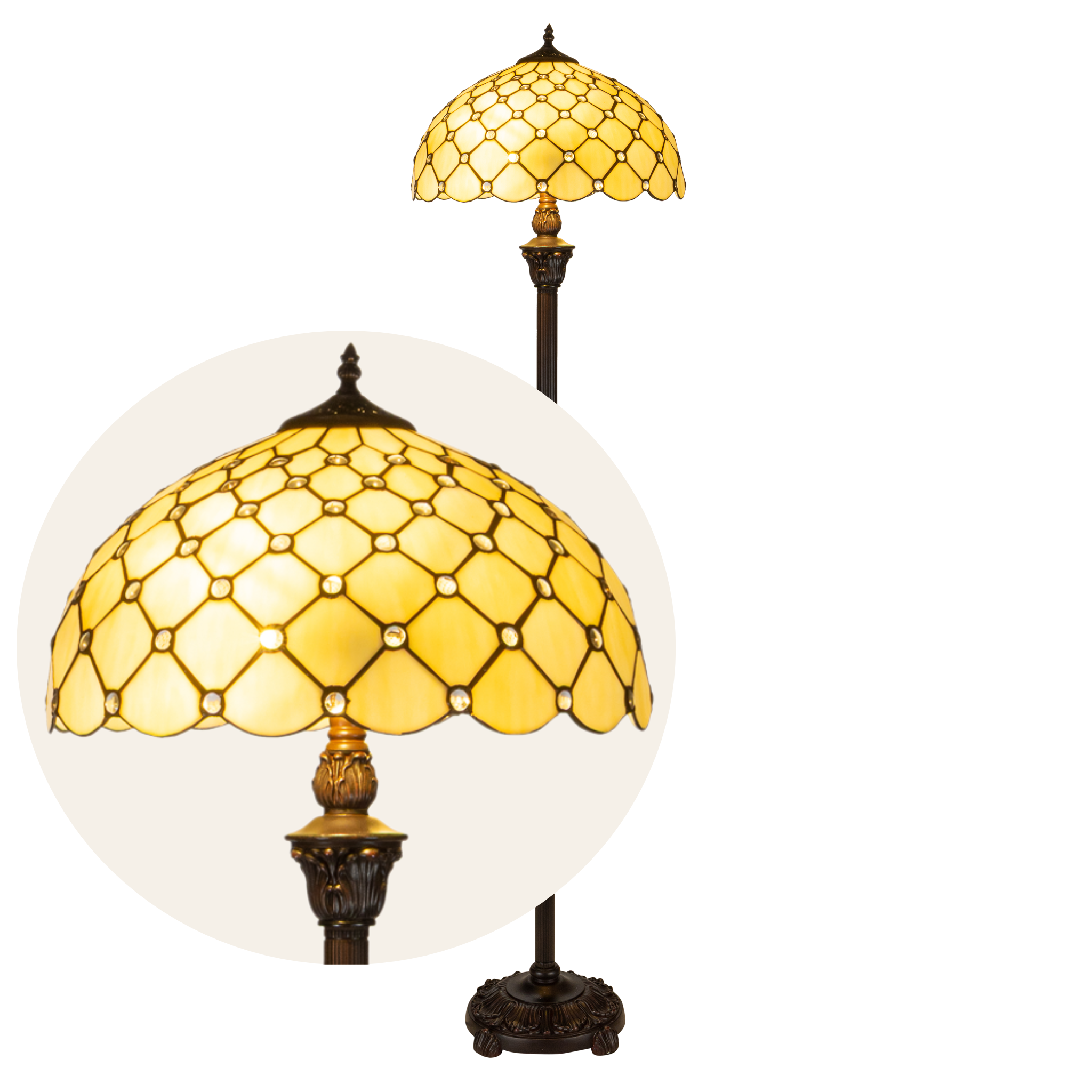 Tiffany vloerlamp – Ruitpatroon & Warme Crèmetinten – Ø 40 × H 165 cm (Art. 7254)