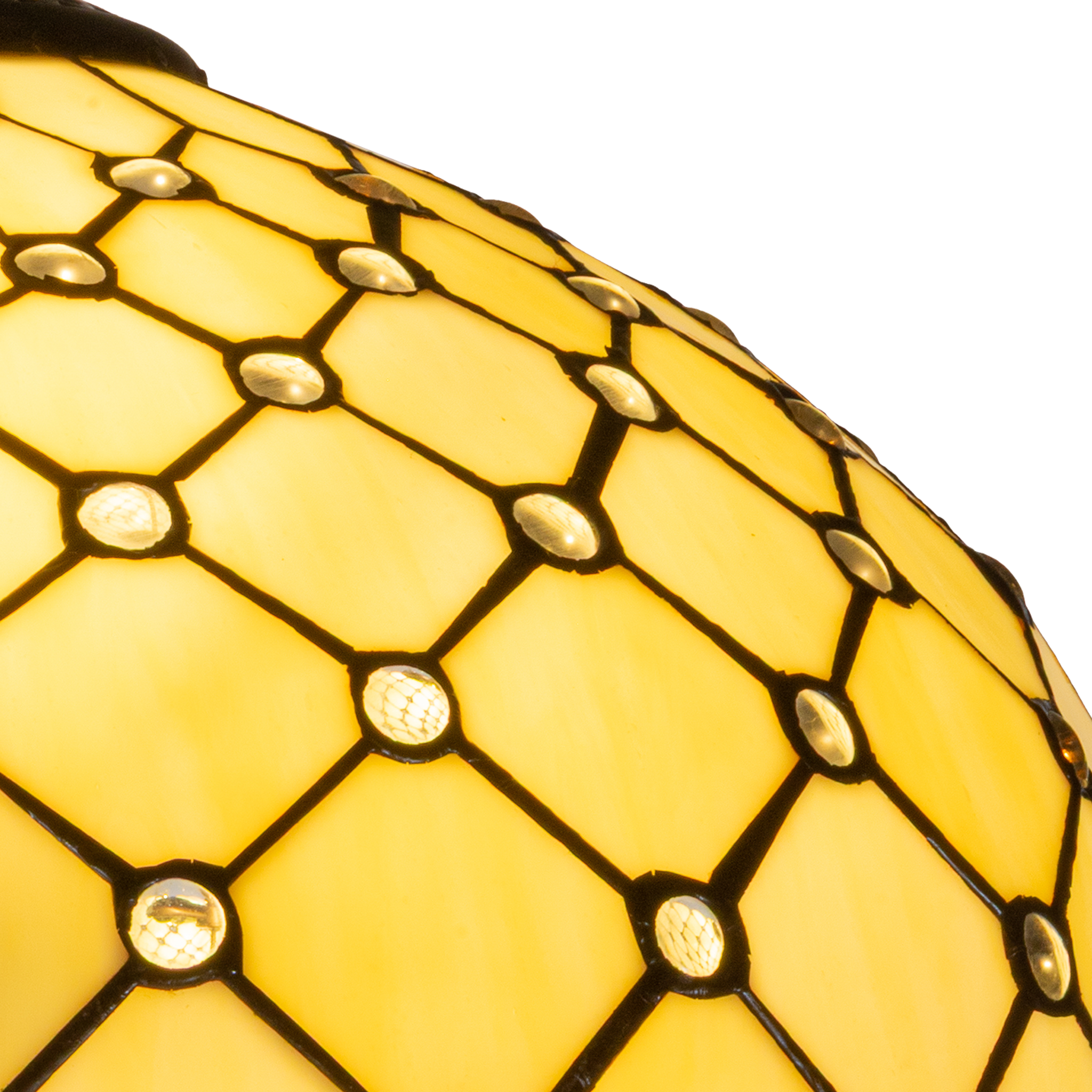 Breng warmte, sfeer en tijdloze Tiffany-elegantie in huis met deze prachtige vloerlamp van RORUVERA. De royale lampenkap is volledig met de hand opgebouwd uit ca. 252 stukjes echt glas-in-lood, gesneden, in koperfolie gezet en zorgvuldig gesoldeerd tot een verfijnd ruitpatroon met sierlijke glasaccenten. De combinatie van crème-, amber- en goudtinten zorgt voor een warme en uitnodigende gloed zodra de lamp wordt ingeschakeld.